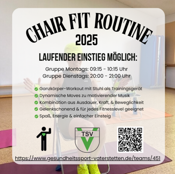 Zur Anmeldung gelangst du hier: Kurs Chair Fit Routine - Gesundheitssport - TSV Vaterstetten e.V. (gesundheitssport-vaterstetten.de)